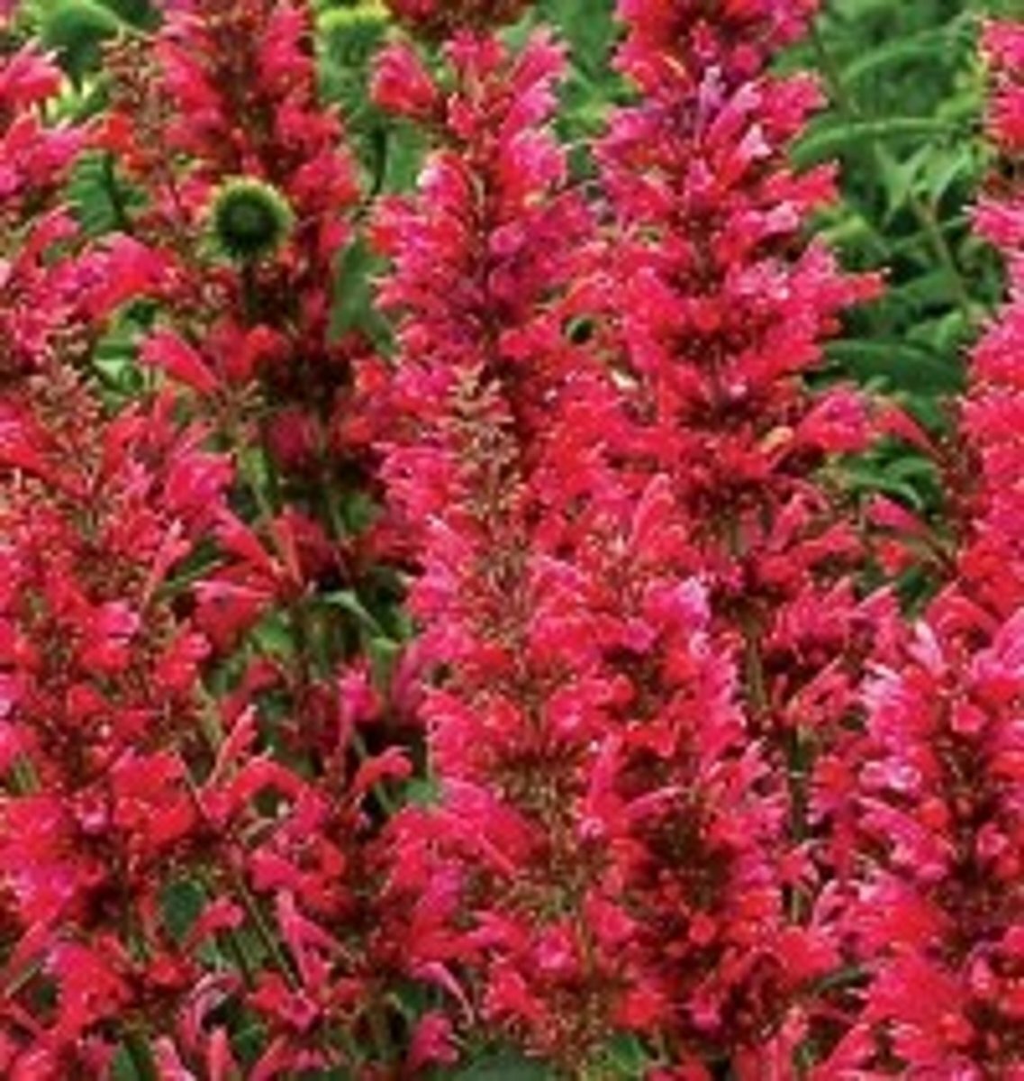 - WindMooie plant met bloeiaren van buisvormige paarsrode bloemen. Het groen blad is aromatisch, getand, lancetvormig, donzig aan de onderkant en geurt naar anijs., ongevoelig