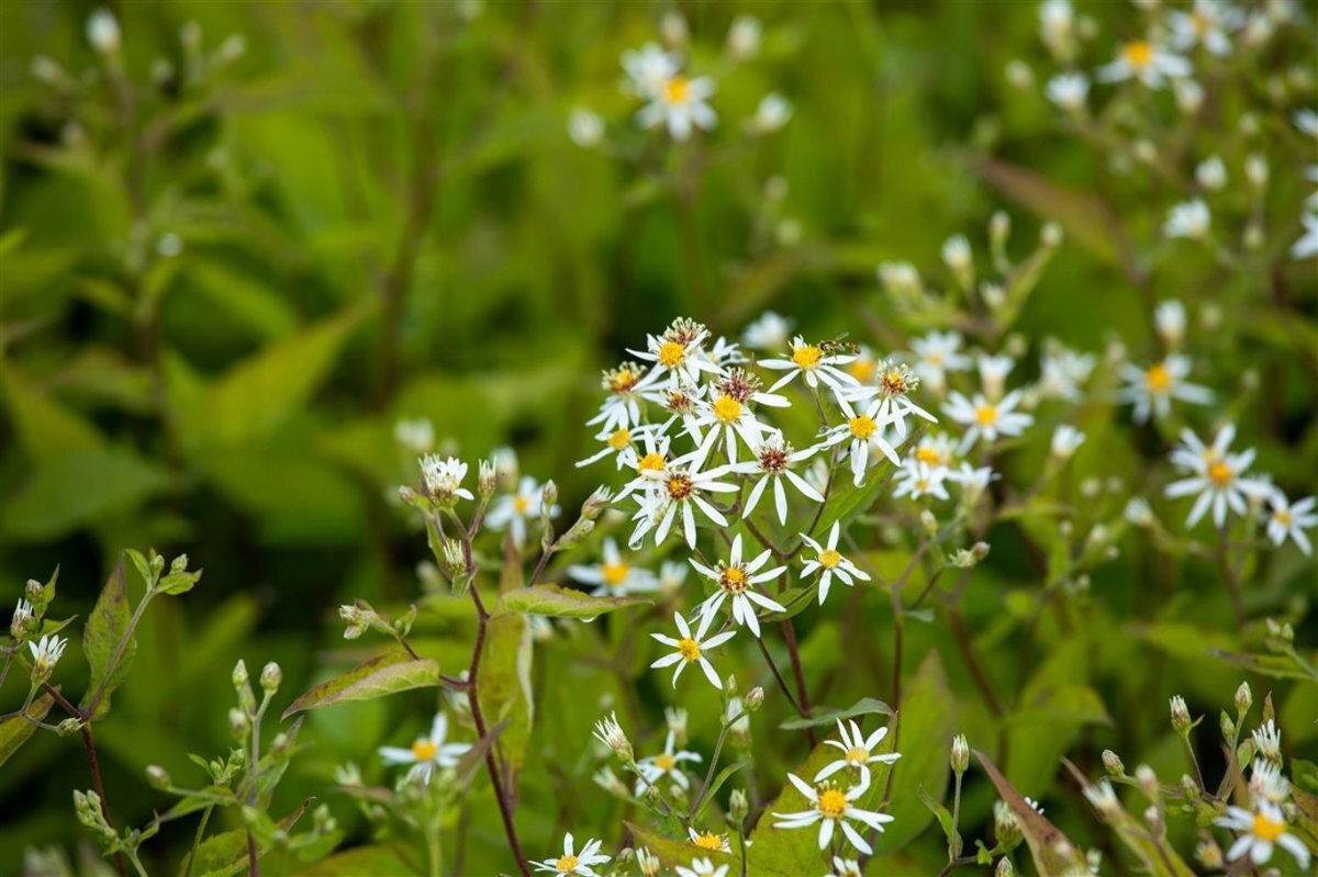 - Omschrijvingeen herfstaster die stervormige witte bloemen krijgt met een geel hart. De stengels zijn bijna zwart van kleur. De herfstaster staat graag op een plek in de zon of in halfschaduw, houdt van een goed doorlaatbare grond en is winterhard.