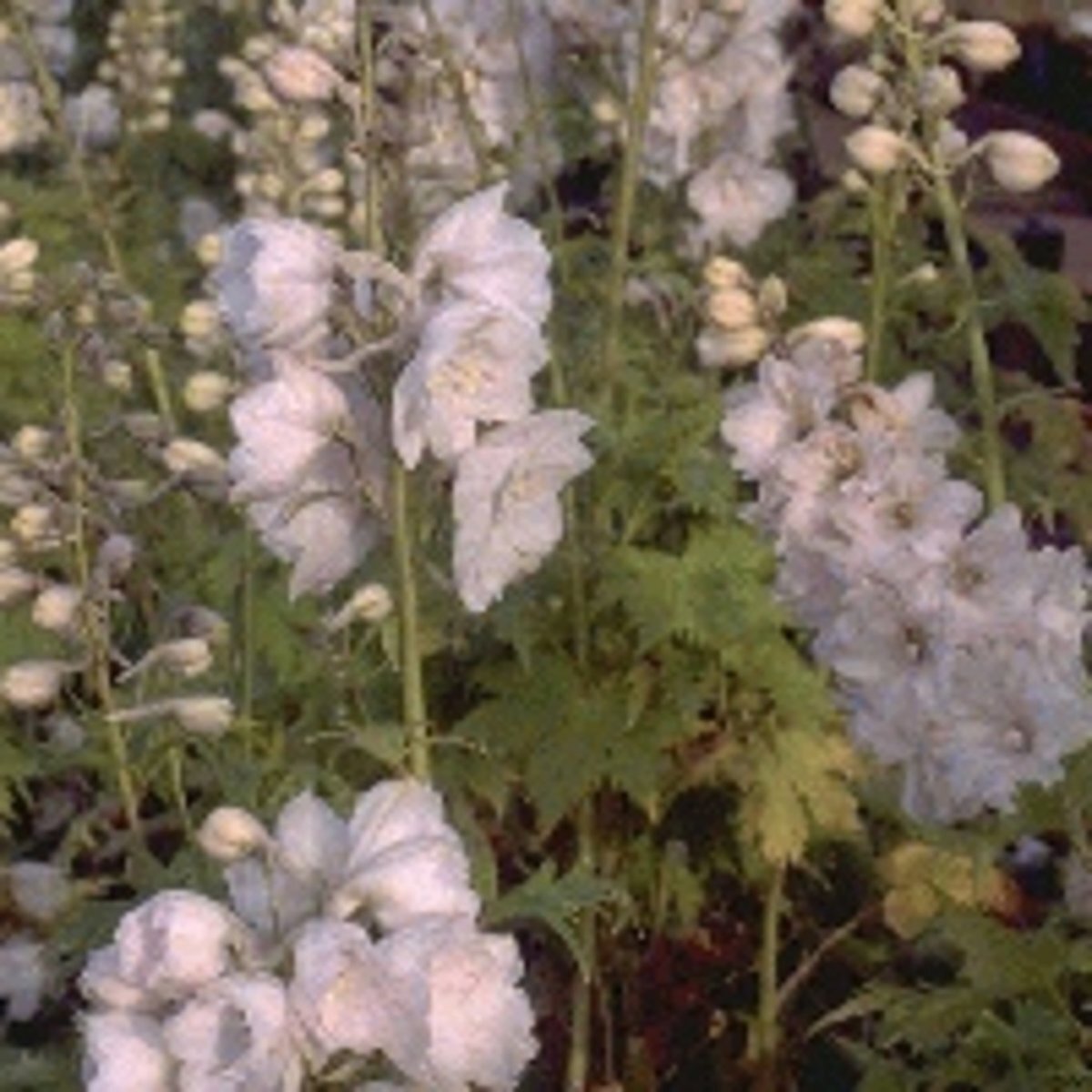 - WindDit is een bladverliezende vaste plant met een compacte, opgaande vorm.De bladeren zijn drie tot vijflobbig, fijn verdeeld en middengroen tot donkergroen van kleur. Delphinium 'Galahad' bloeit van juni tot augustus met zuiverwitte bloemen met een zwart oog aan stevig opgaande stengels., weinig gevoelig