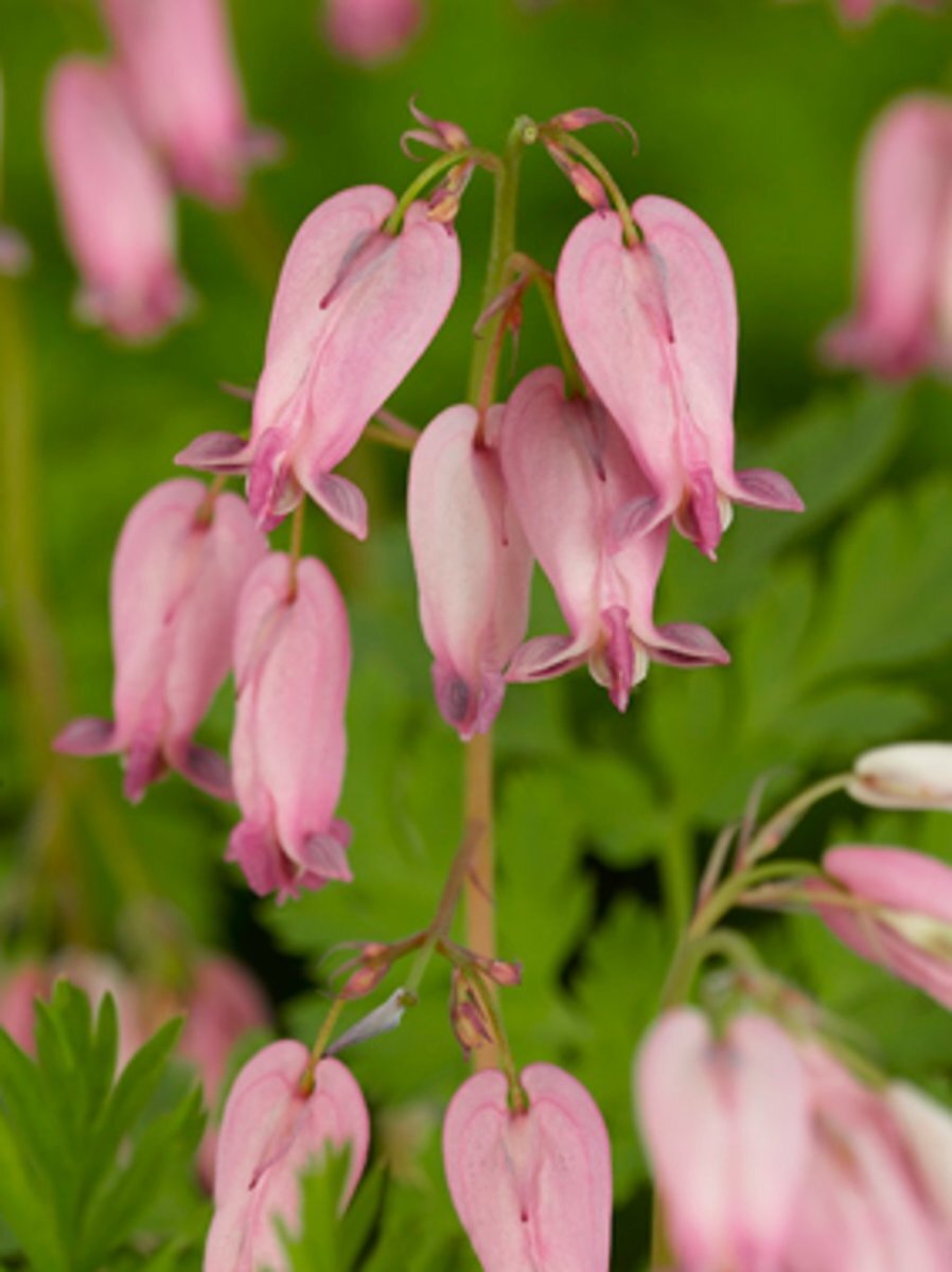 - Windeen bladverliezende vaste plant met een polvormende habitus, de bladeren zijn grijsgroen, diep ingesneden, varenachtig met een blauwgroene onderzijde. Dicentra formosa bloeit in tegenstelling tot dicentra spectabilis doorlopend van mei tot oktober met knikkende, roze buisvormige bloempjes in grote bloempluimen ., gevoelig, weinig gevoelig