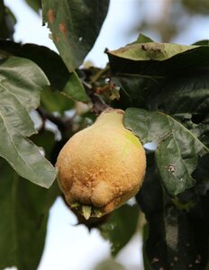 - OmschrijvingGrote peervormige gele vruchten, harde schil, geparfumeerd. Is zelfbestuivend. Gebruikstip: Kweeperen worden gekookt verwerkt tot compote, confituur, sappen, wijn en likeur. Rauw zijn ze vrijwel niet te eten door het harde en zure vruchtvlees