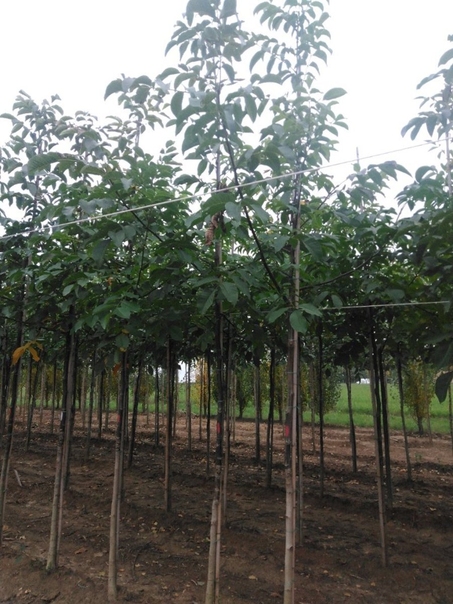 - OmschrijvingGrote bladverliezende boom die solitair is. Goed productief met losse en luchtige kroon. Produceert grote vruchten die in een bolster zitten.