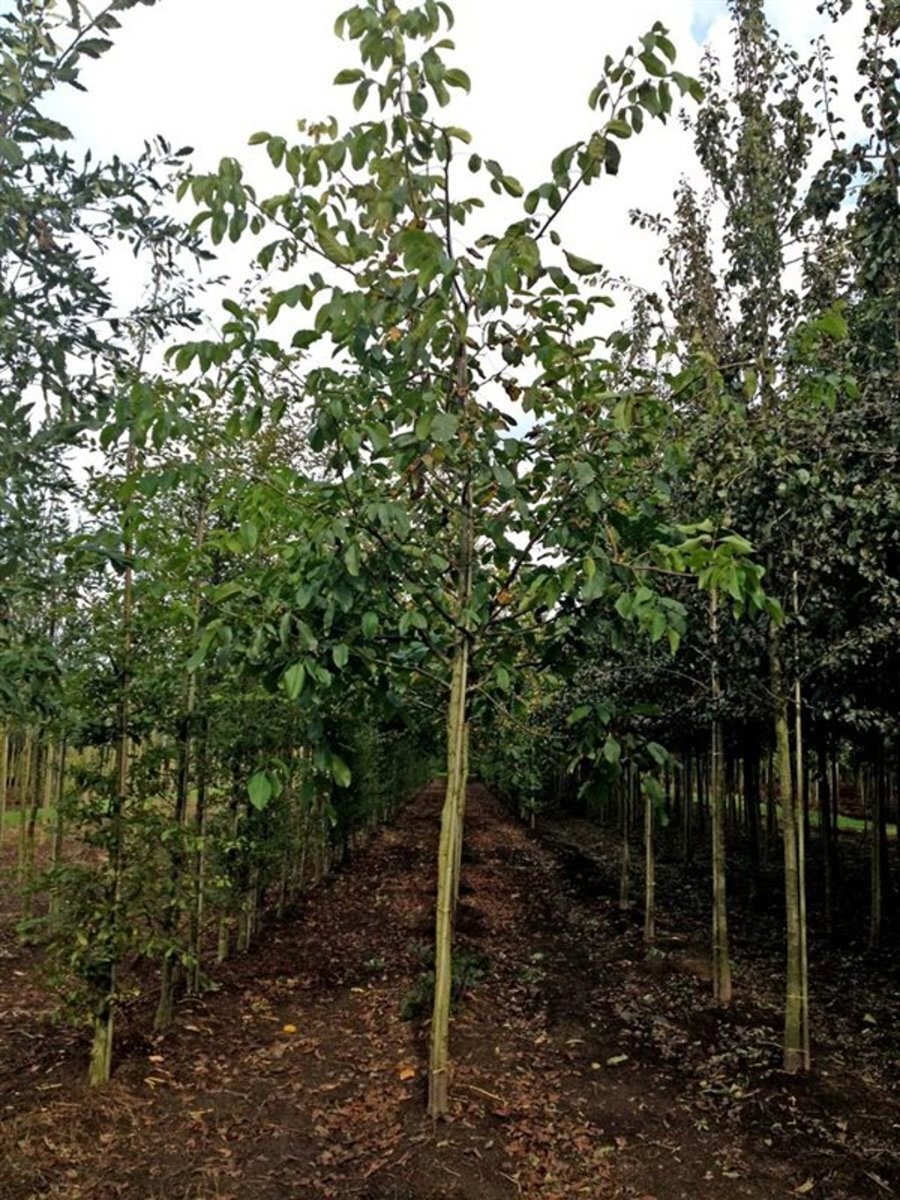 - OmschrijvingGrote bladverliezende boom die solitair is. Goed productief met losse en luchtige kroon. Produceert grote vruchten die in een bolster zitten.