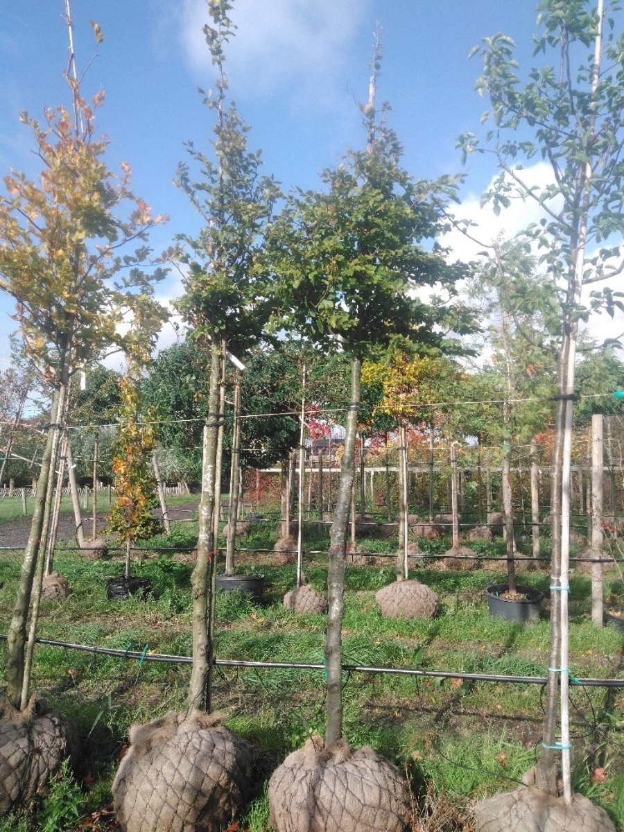 De maat van een boom wordt weergegeven met een omtrek maat in cm. Deze maat wordt genomen op 1 meter boven het maaiveld en bestaat uit 2 getallen gescheiden door een koppelteken.