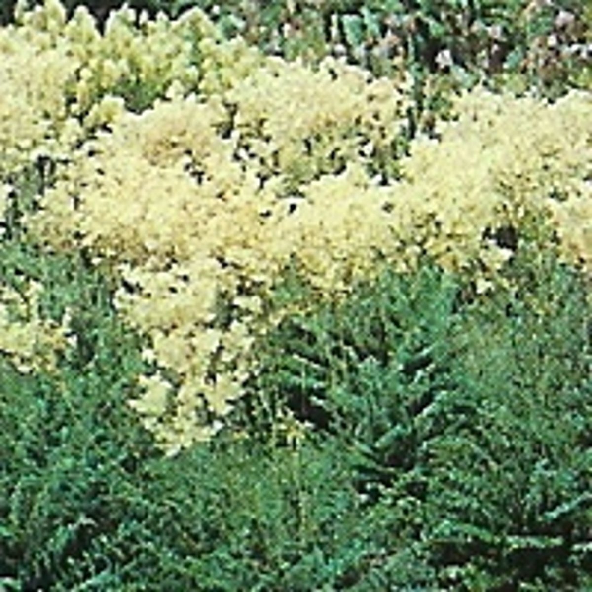 - WindFilipendula vulgaris 'Plena' is een sterke plant met aantrekkelijke varenachtige bladeren en dubbele witte bloemen., ongevoelig, weinig gevoelig