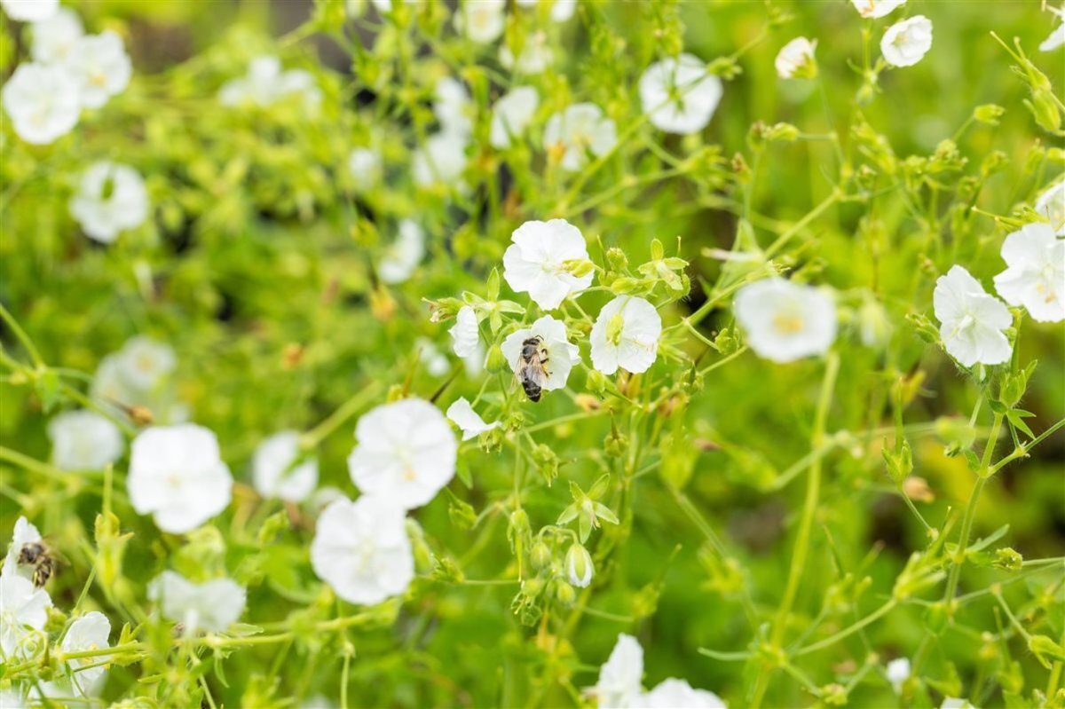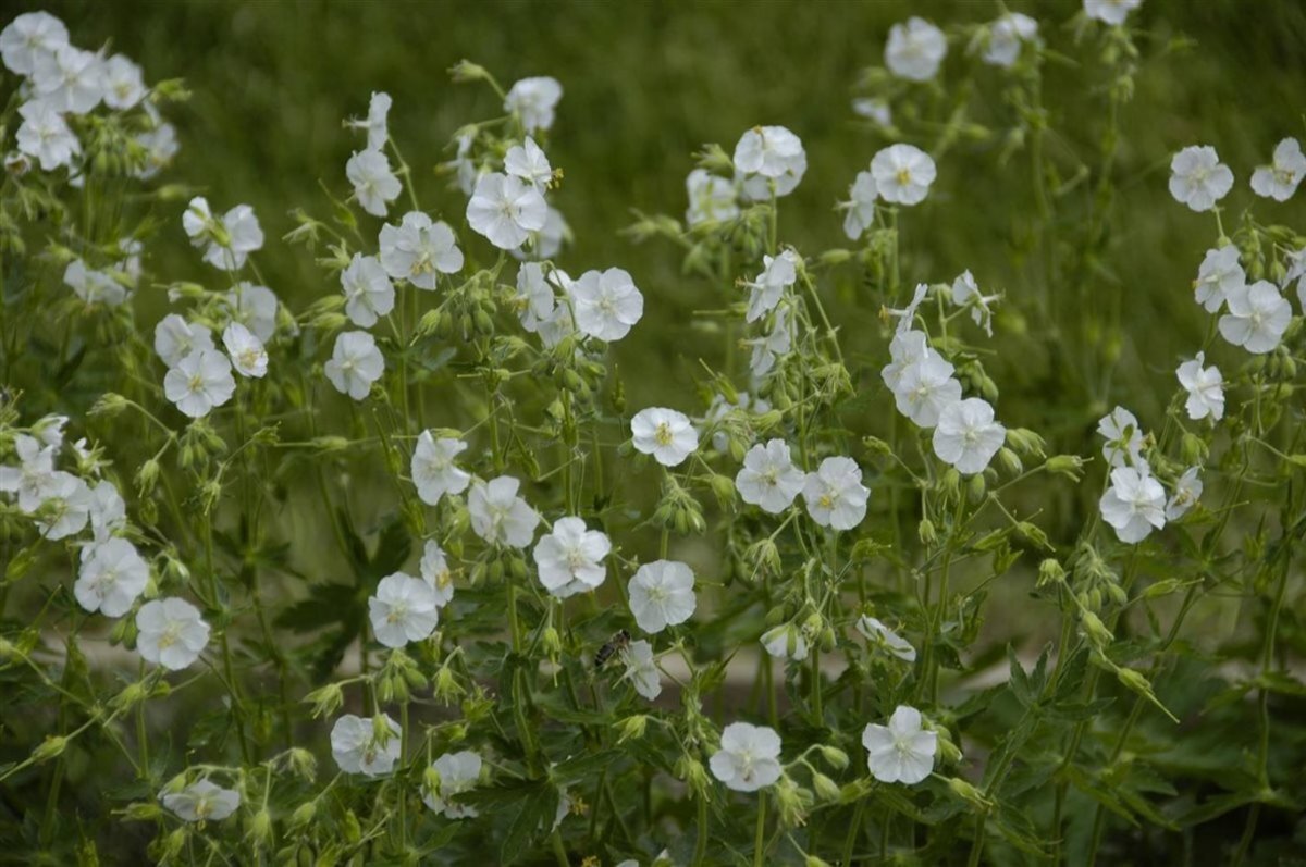- OmschrijvingIn de vroege zomer draagt Geranium sanguineum 'Album' grote zilverwitte bloemen. Na de bloei blijven de bloemstengels doorgroeien.