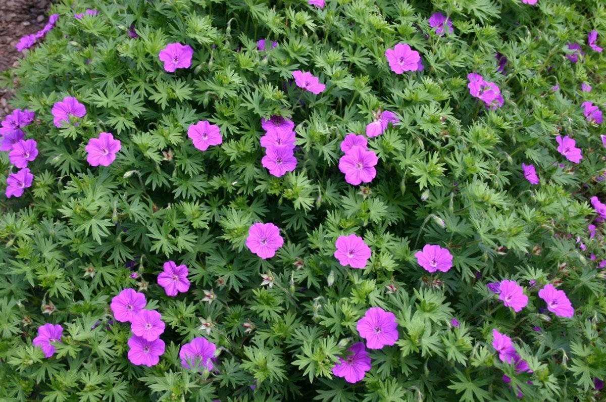 - WindGeranium 'Tiny Monster' vormt een compacte plant met een uitbreidende groeiwijze en groene bladeren verkleurend in het najaar naar paars tot brons. Bloeit met kleine, geaderde, helder magentaroze bloemen., ongevoelig, zeewind bestendig
