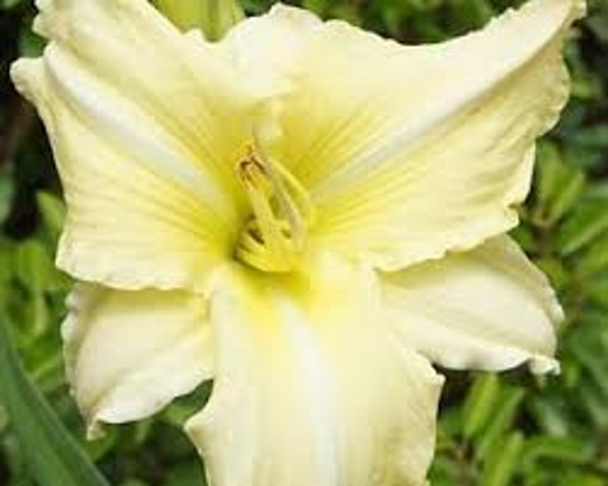 - WindHemerocallis 'Iron Gate Glacier' bloeit in de maanden juli tot in september met cremegele bloemen, bloemen 15 tot 18 cm groot., ongevoelig, zeewind bestendig