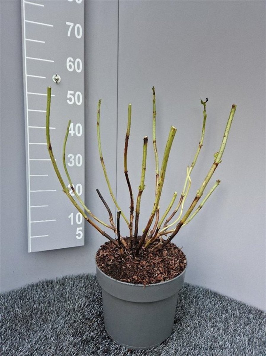 De maat van heesters en haagplanten worden weergegeven in cm in hoogte, gemeten vanaf het maaiveld.