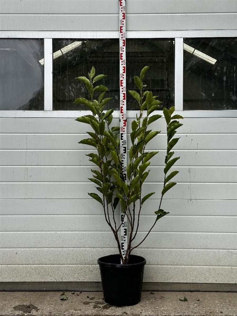 De maat van heesters en haagplanten worden weergegeven in cm in hoogte, gemeten vanaf het maaiveld.