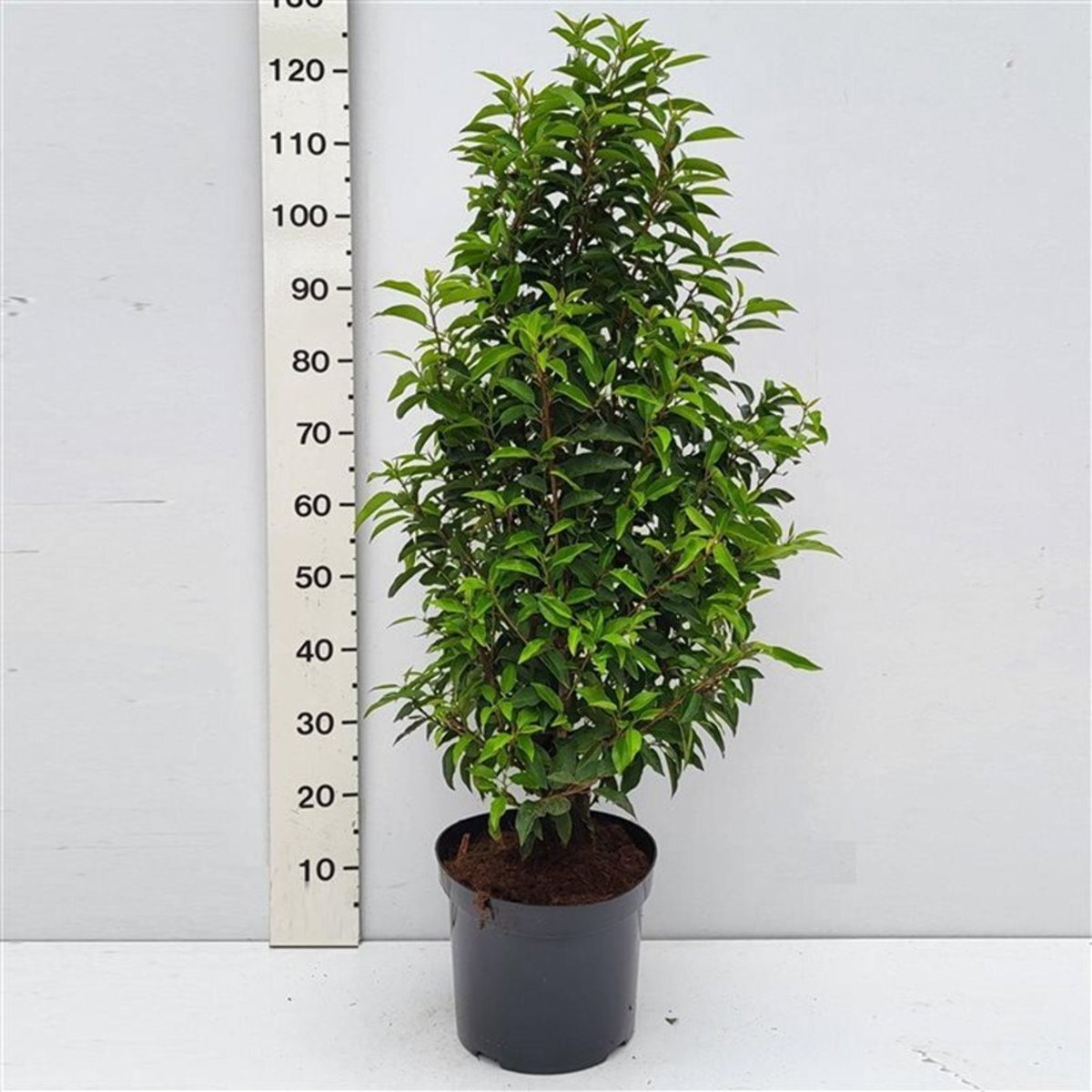 De maat van heesters en haagplanten worden weergegeven in cm in hoogte, gemeten vanaf het maaiveld.