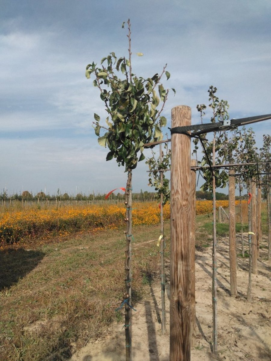 - WindDe vruchten zijn groot, opvallend met geelgroen kleur. Is zelfbestuivend. Kruisbestuivers: Pyrus communis 'Beurré Hardy', Pyrus communis 'Bonne Louise d'Avranches', Pyrus communis 'Charneux', Pyrus communis 'Doyenné du Comice', Pyrus communis 'Gieser Wildeman', Pyrus communis 'Saint Rémy', Pyrus communis 'Williams Christbirne' Gebruikstip: Een handpeer met een zoete smaak, weinig gevoelig