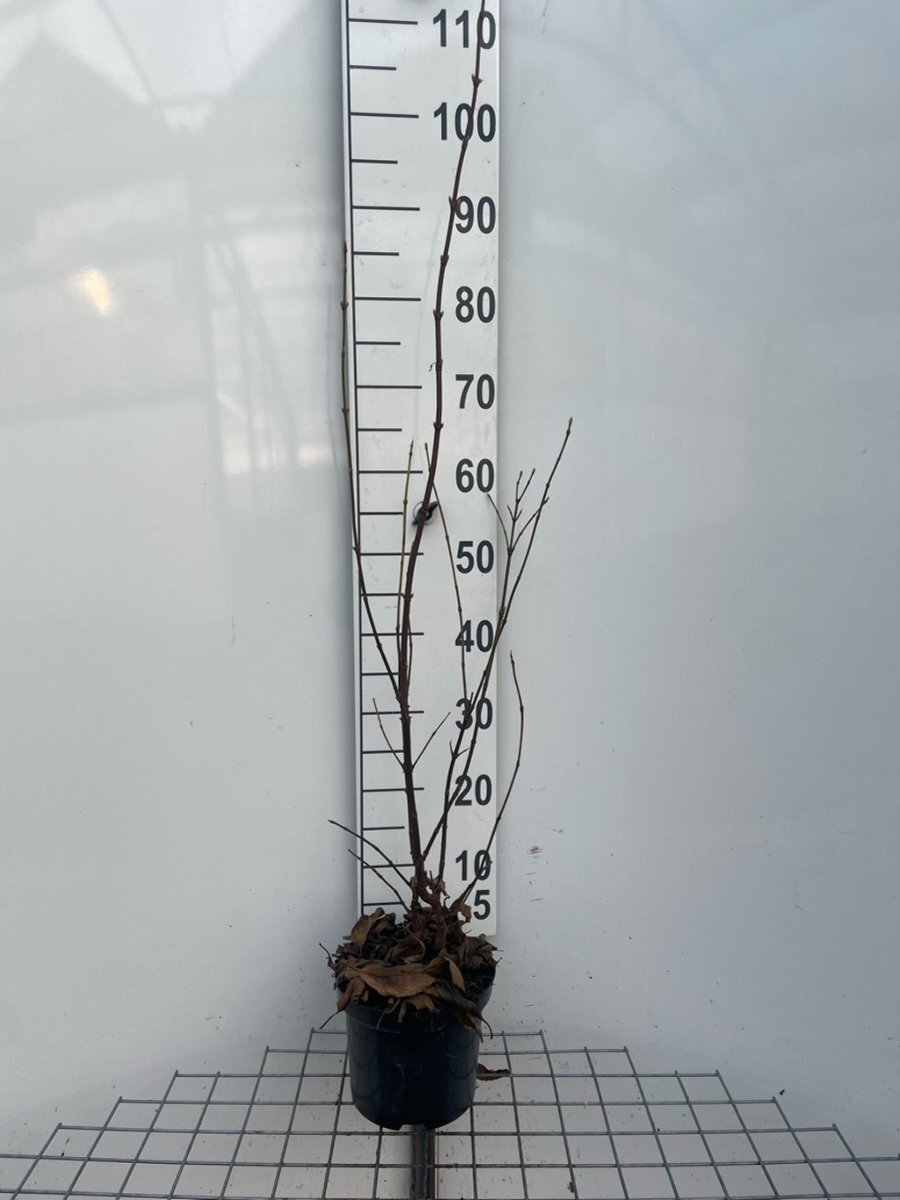 De maat van heesters en haagplanten worden weergegeven in cm in hoogte, gemeten vanaf het maaiveld.